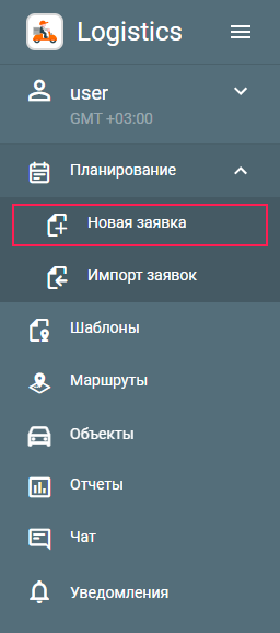 Чтобы создать заявку, в навигационной панели в пункте Планирование выберите подпункт Новая заявка.