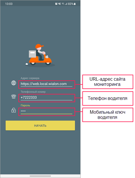 • Телефонный номер  — телефонный номер из свойств водителя;