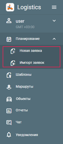 Меню работы с заявками находится в пункте Планирование навигационной панели.