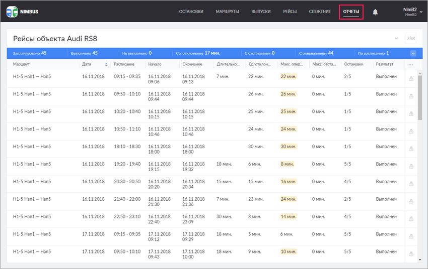 В NimBus доступны следующие типы отчетов:
