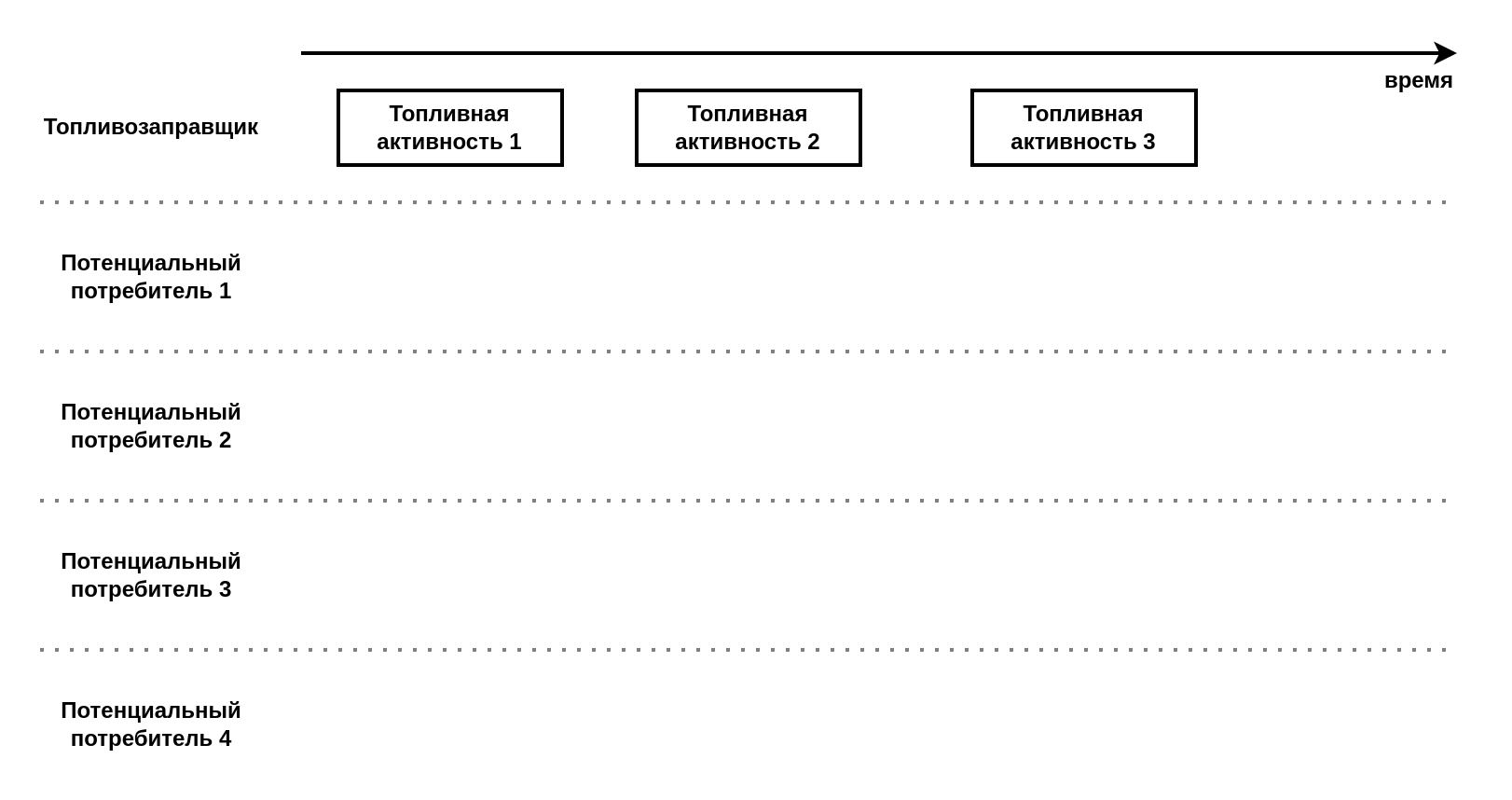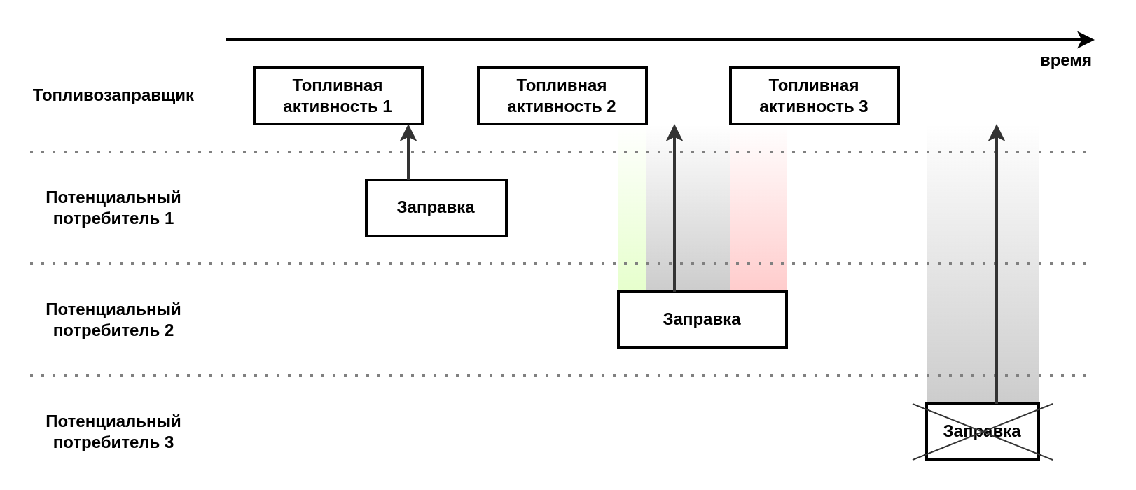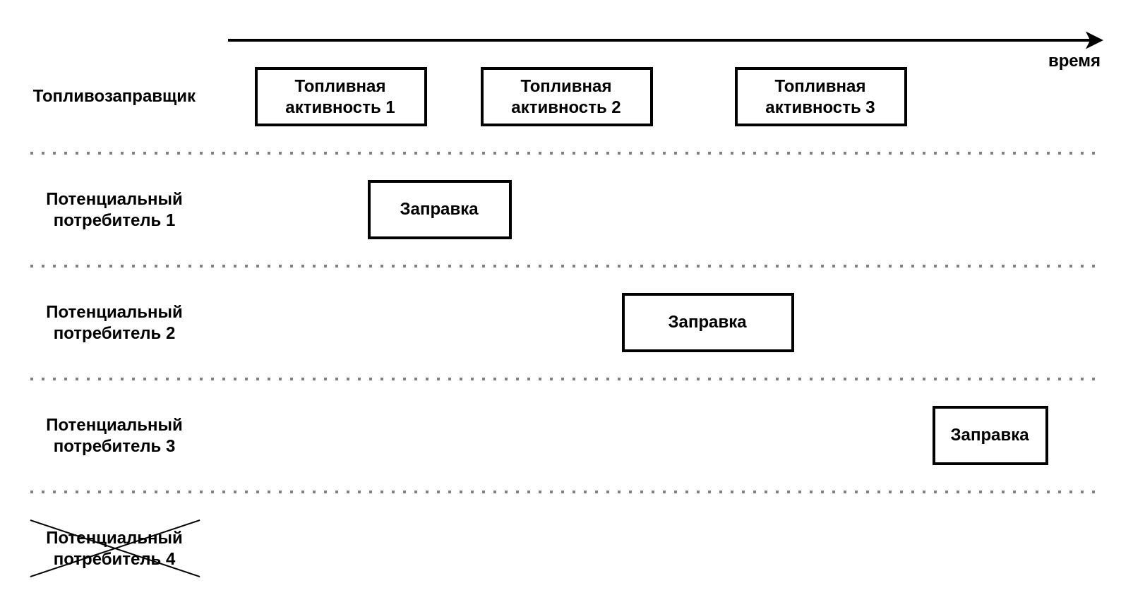 - В одну строку с топливной активностью 3 не будет выводиться ни одна заправка. Интервал заправки потребителя 3 не имеет пересечений ни с одной выдачей.