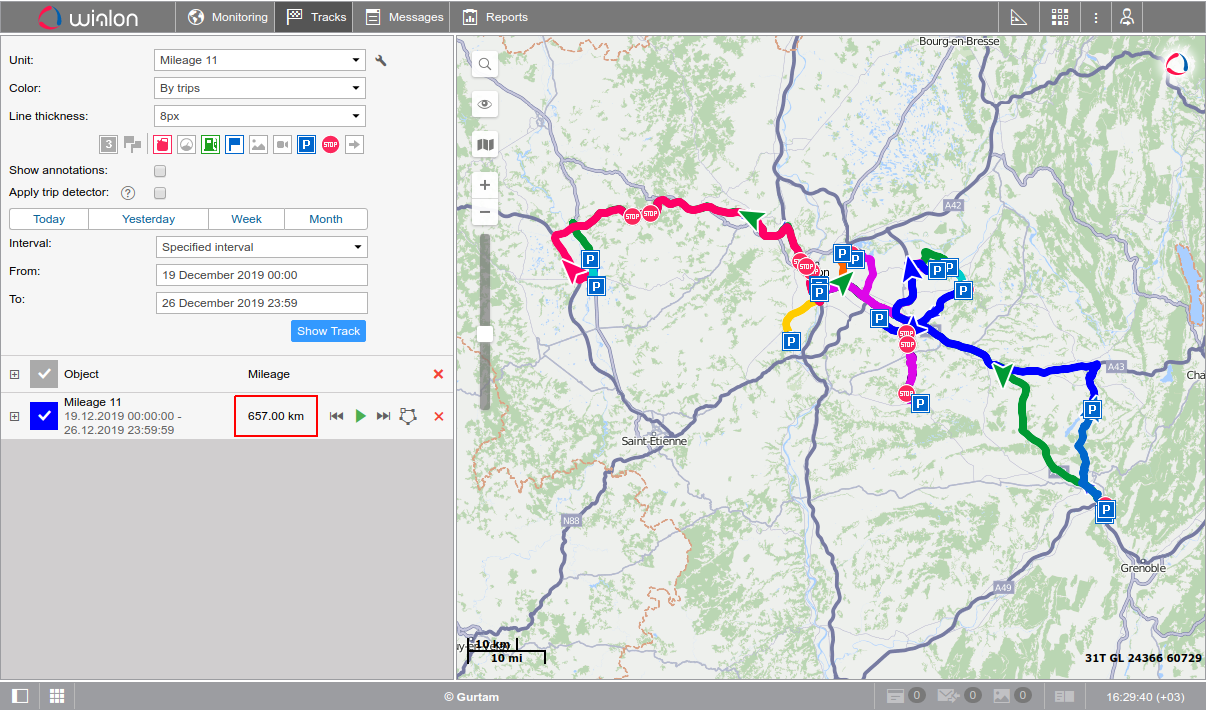 - Если в последнем сообщении интервала нет значения датчика пробега, то система ищет последнее доступное сообщение со значением пробега на этом интервале, а потом к нему прибавляется пробег до конца поездки, рассчитанный по GPS-координатам.