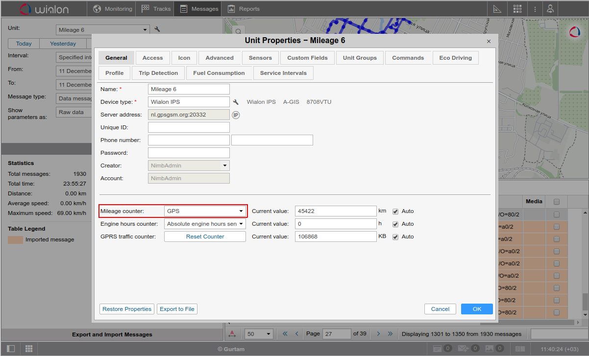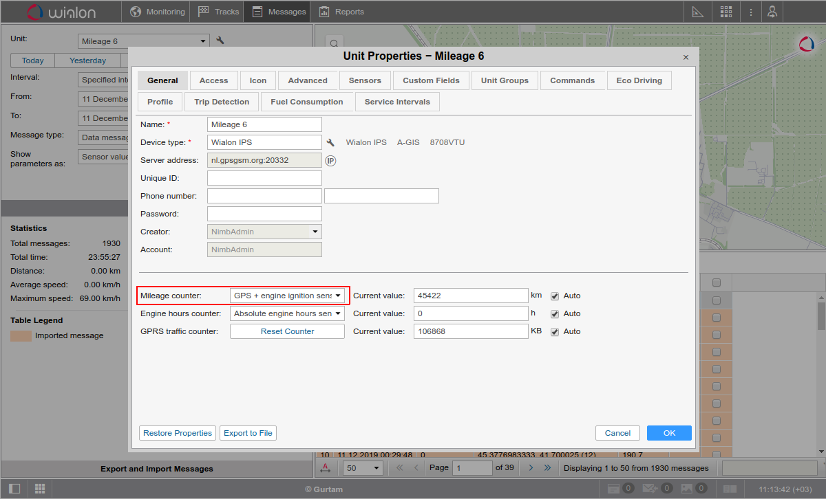 Если вы столкнулись с проблемой некорректного определения пробега в отчете, на треке или в сообщениях, то в первую очередь проверьте, какой тип счетчика пробега выбран у вас на вкладке Основное в свойствах объекта:
