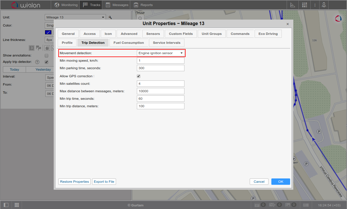 В некоторых случаях счетчик (вкладка Основное в свойствах объекта) работает на основе GPS-координат, но при этом также создан отдельный датчик пробега (вкладка Датчики в свойствах объекта). В отчетах, например, с таблицей Поездки колонка Пробег будет выводить значение по GPS (суммарное расстояние между координатами), но значение колонок Начальный/Конечный пробег будет рассчитано следующими методами: