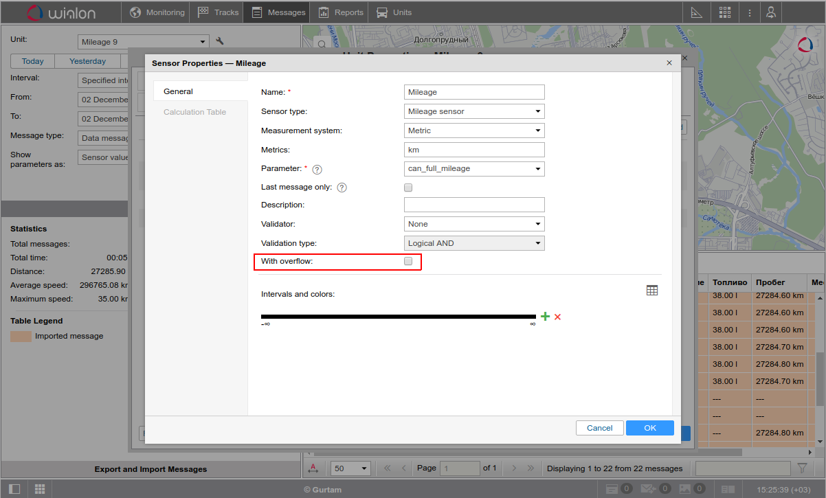 - Если значение датчика пробега имеется в первом/последнем сообщении интервала, то система использует эти значения.