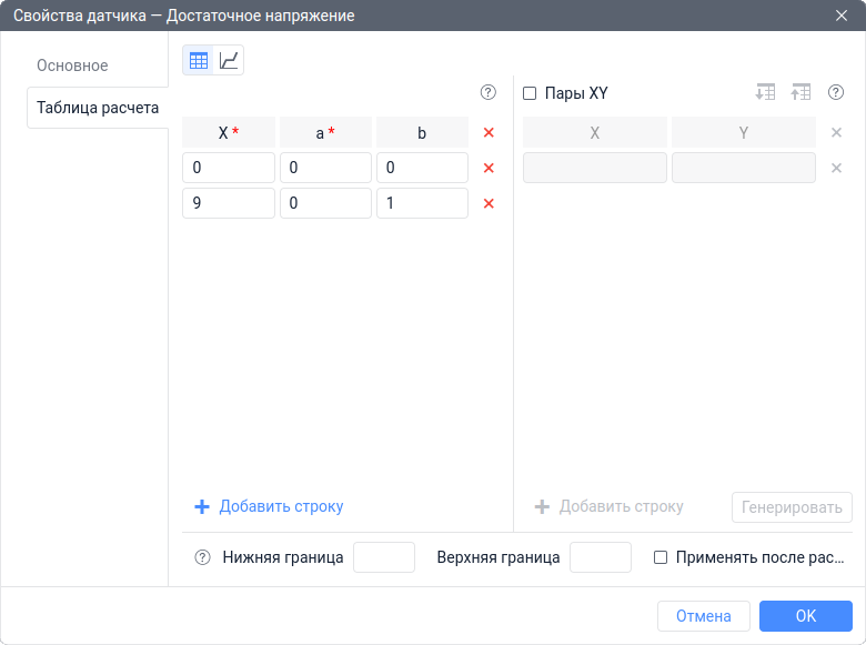 В некоторых случаях добиться одного и того же результата можно разными методами. Например, сложить значения двух датчиков можно и с помощью выражения в строке Параметр, и с помощью валидации. Далее подобные случаи будут рассмотрены дополнительно.