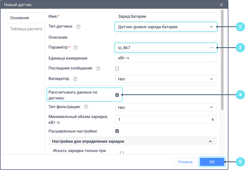 - Убедитесь, что опция Рассчитывать данные по датчику включена. О других свойствах датчика можно узнать на странице Дополнительные свойства датчика уровня заряда батареи.