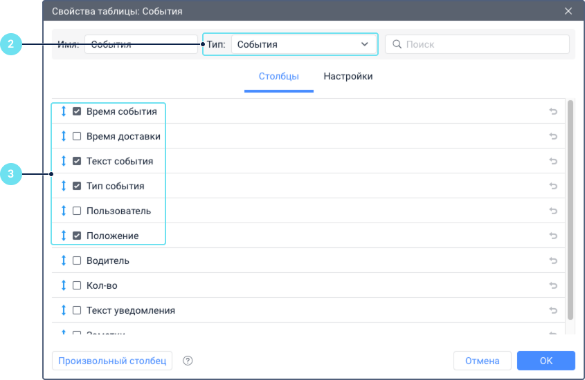 Выберите столбцы для таблицы. В примере выбраны следующие: