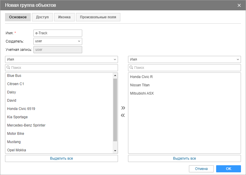 Если в свойствах объекта, добавленного в группу, были изменены значения IMEI, регистрационного номера или OBU ID, удалите этот объект из группы и добавьте его заново, чтобы учесть изменения.