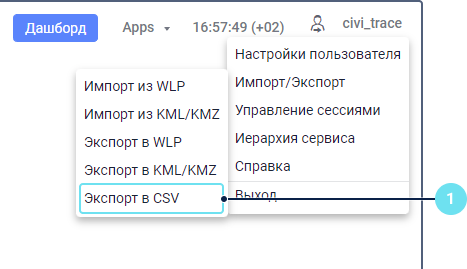 1. В меню пользователя выберите пункт Импорт/Экспорт и затем — Экспорт в CSV.