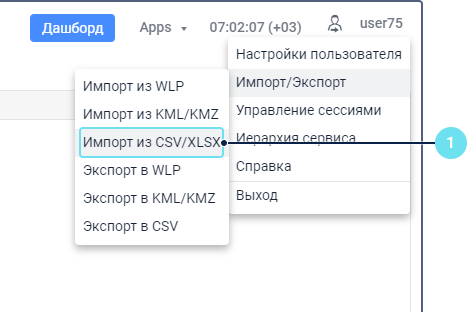В меню пользователя выберите пункт Импорт/Экспорт и затем — Импорт из CSV/XLSX.