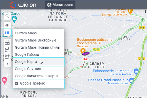 В верхнем левом углу карты в системе мониторинга нажмите на кнопку