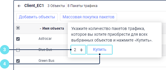 Можно приобретать пакеты трафика для нескольких объектов одновременно. Для этого выполните следующие шаги: