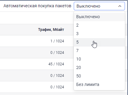 При выборе варианта Без лимита количество пакетов трафика, которое может покупаться для объекта каждый месяц, не ограничено.