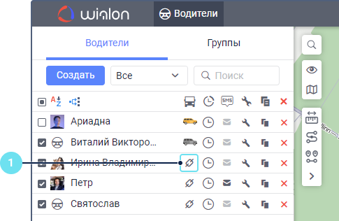 Назначить и снять водителя с объекта вручную можно в режиме Водители или Группы на вкладке Водители с помощью иконок  и  соответственно.