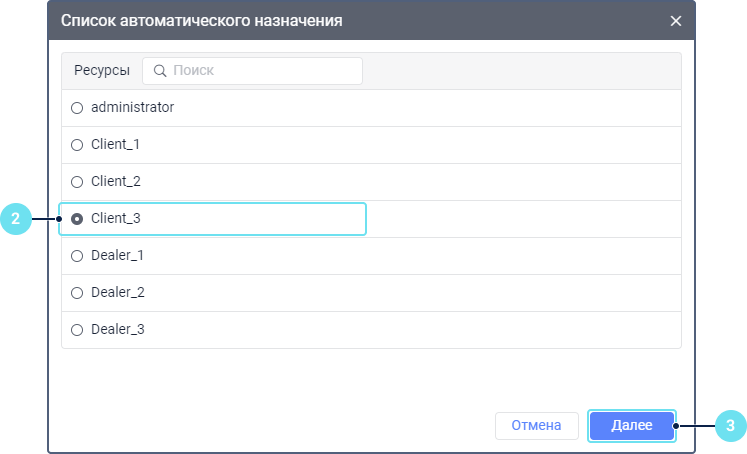 Чтобы отменить автоматическое назначение и снятие, нажмите на иконку , выберите ресурс, снимите галочки с необходимых объектов и сохраните изменения.