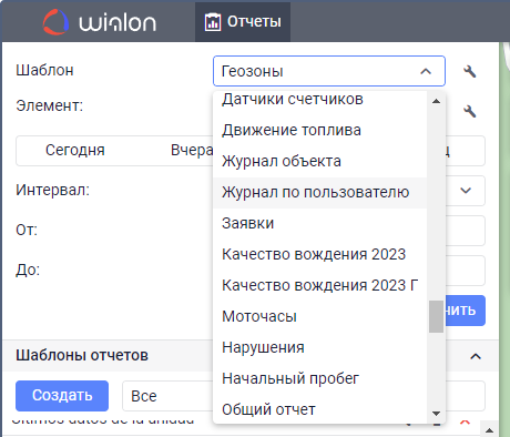 - в отчетах для конкретизации водителя, датчика, события (нарушения), маршрута и его геозоны, а также при выборе геозон;
