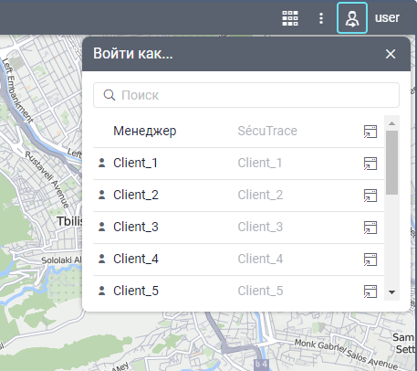 - В открывшемся списке щелкните по строке необходимого пользователя, чтобы войти в систему от его имени на существующей вкладке. Чтобы сделать это в новом окне, нажмите на иконку