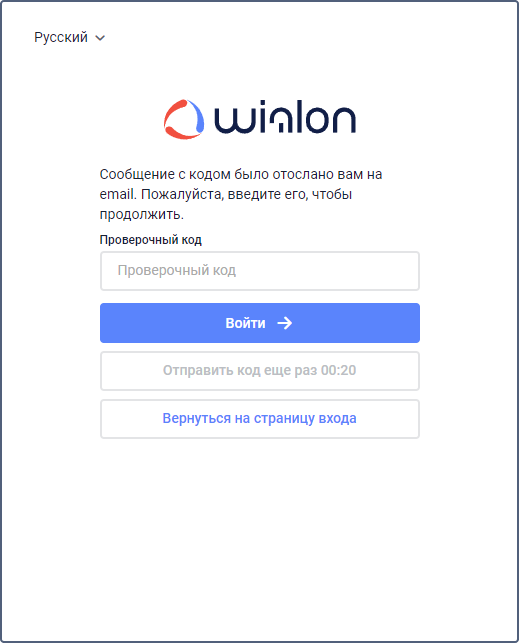 Для учетной записи со включенной двухфакторной аутентификацией при входе в систему, помимо пароля, необходимо ввести проверочный код. Он отправляется на email или посредством SMS. Отправленный код действует 2 часа.