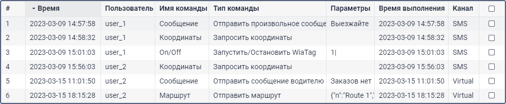 Дата и время выполнения команды. Если команду не удалось выполнить по причине тарифных ограничений, в графе показывается прочерк.
