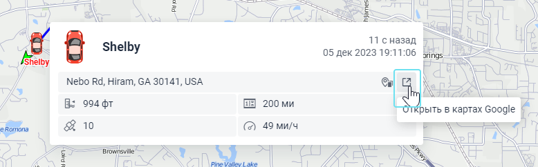 В зависимости от настроек объекта значения во всплывающей подсказке и расширенной информации могут быть в метрической (километры, метры, километры в час, литры), американской (мили, футы, мили в час, галлоны) или имперской (мили, футы, мили в час, галлоны) системах мер.