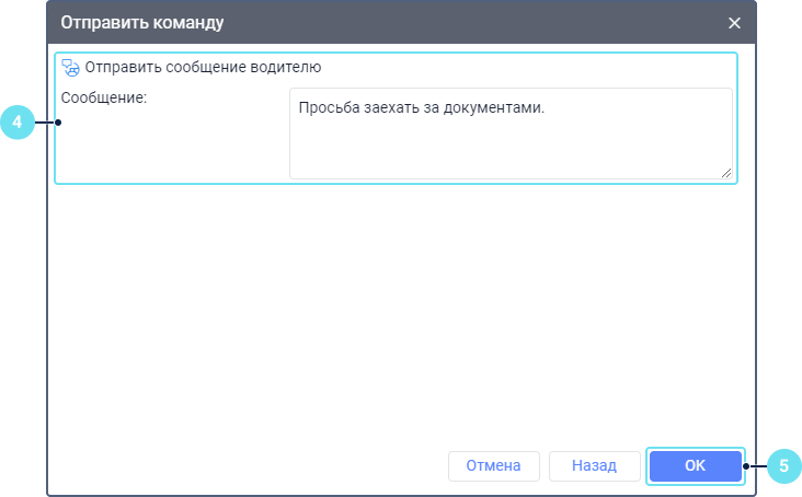 - Команду Отправить сообщение водителю можно посылать на объекты не только описанными выше способами, но и из окна Переписка с водителями, в которое приходят ответы на ваши сообщения.