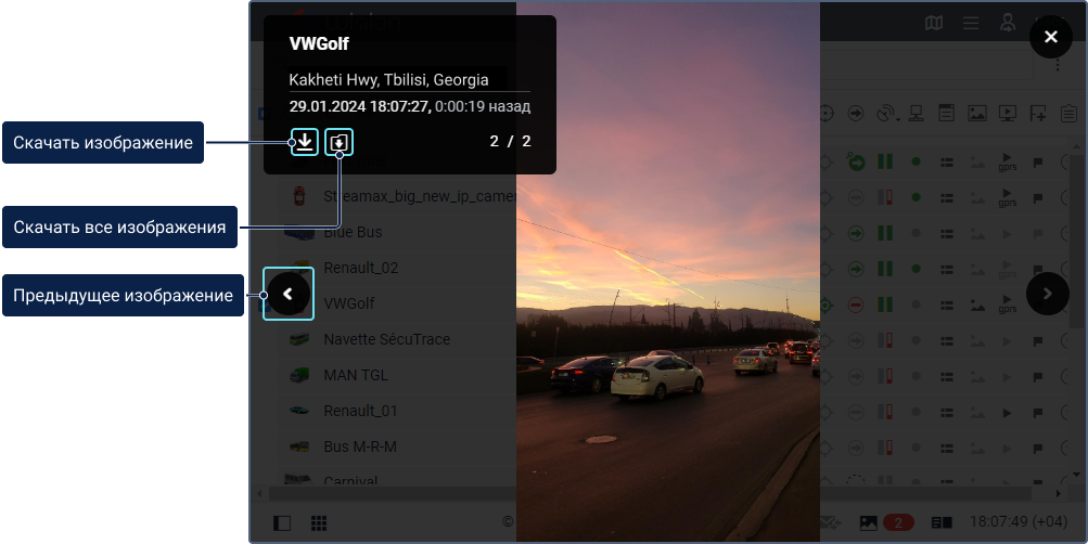 - номер просматриваемого файла и общее количество полученных изображений и видео.