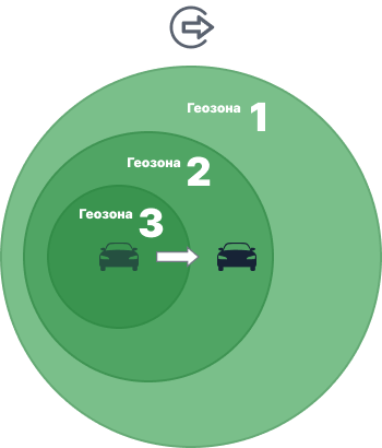 | ИЛИ | Уведомление срабатывает, когда объект выходит из любой из выбранных геозон, если до этого он находился одновременно во всех выбранных геозонах. Пример. В настройках уведомления выбраны Геозона 1, Геозона 2 и Геозона 3. Геозона 3 находится внутри Геозоны 2 и Геозоны 1. Объект находится в Геозоне 3 и, соответственно, во всех трех геозонах одновременно. Когда он выходит из Геозоны 3, но все еще остается в Геозоне 2 и Геозоне 1, уведомление срабатывает. Также уведомление сработает, если объект выйдет из Геозоны 3 в Геозону 1 или покинет все геозоны сразу. Если объект находился в Геозоне 2 или в Геозоне 1 и покинул их, то уведомление не сработает. ![]() |
