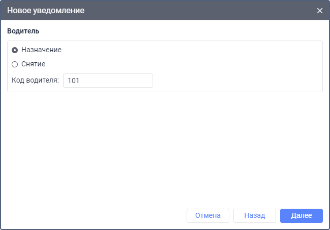 Уведомления этого типа позволяют узнавать о назначении или снятии водителей с объектов.