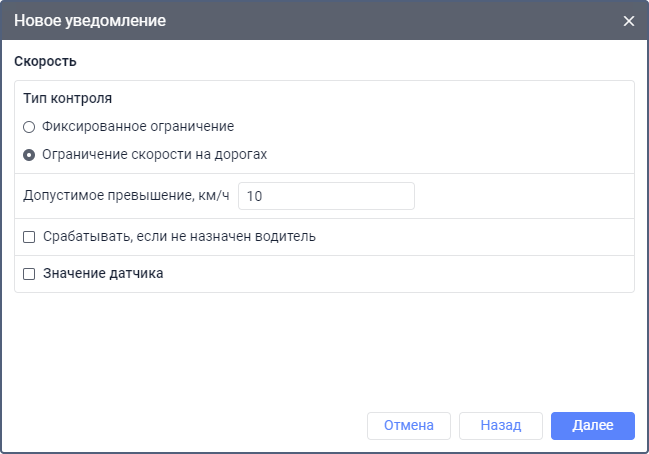 Уведомление этого типа позволяет контролировать скорость транспортного средства.
