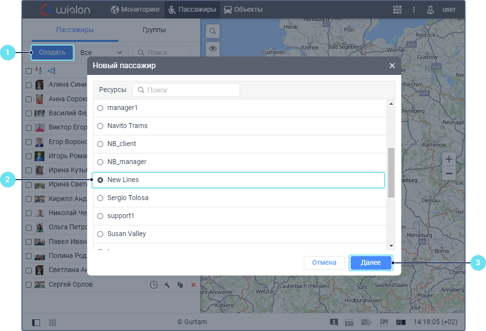 Выберите ресурс, в котором необходимо создать пассажира, если вам доступно более одного ресурса.
