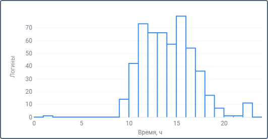 График Логины по часам показывает частоту входов пользователя в систему в различное время (часы):