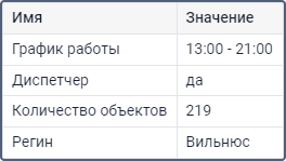 Таблица Произвольные поля представляет перечень полей, добавленных на одноименной вкладке в свойствах пользователя. Выглядит и настраивается этот отчет так же, как и аналогичный отчет для объектов и групп объектов.