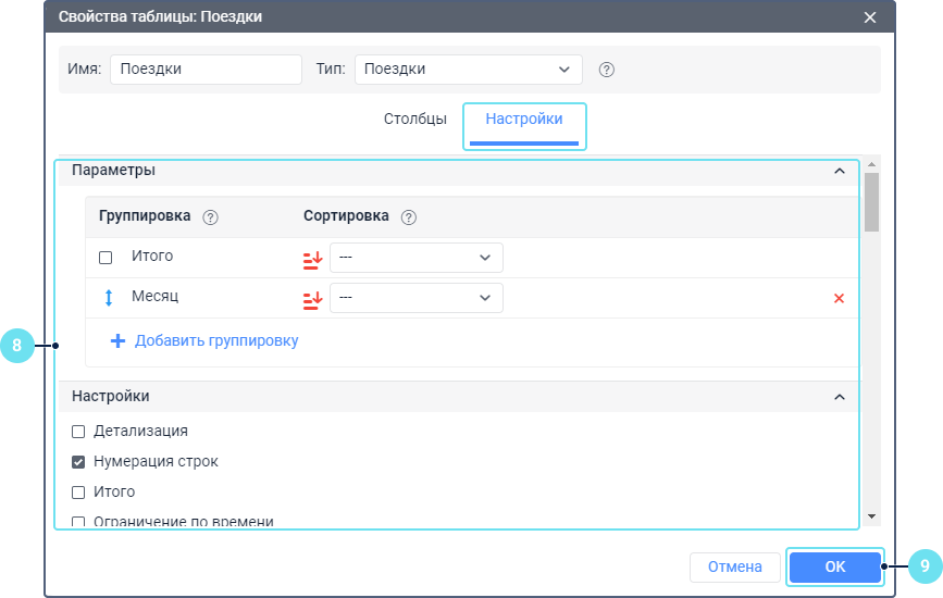 8. Настройте формат таблицы: группировка, сортировка, фильтрация, детализация, нумерация строк и пр.