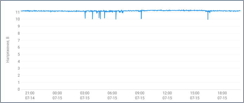 Если по нескольким данным, выбранным для графика, есть по несколько датчиков, то разделению подлежит верхний в списке. Например, для отображения на графике выбраны напряжение и температура (напряжение в списке расположено выше). Допустим, у объекта есть два датчика температуры и два датчика напряжения. Если опция Разделять датчики не активирована, то отчет содержит один график с четырьмя линиями на нем. Если активирована, — два графика с тремя линиями на каждом: на первом — первый датчик напряжения и оба датчика температуры, а на втором — второй датчик напряжения и оба датчика температуры.