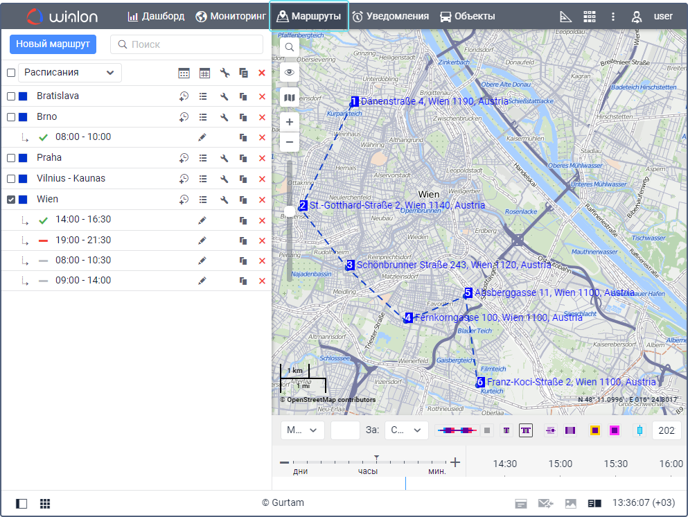 | Расписание | График прохождения контрольных точек маршрута по времени. Для маршрута можно создать любое количество расписаний. Подробнее о создании расписаний читайте здесь. |