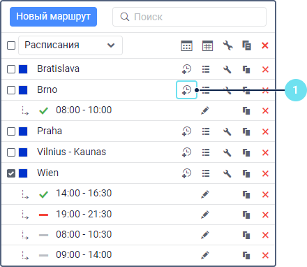 Действия, которые можно выполнять с расписаниями, описаны на странице Работа с маршрутами.