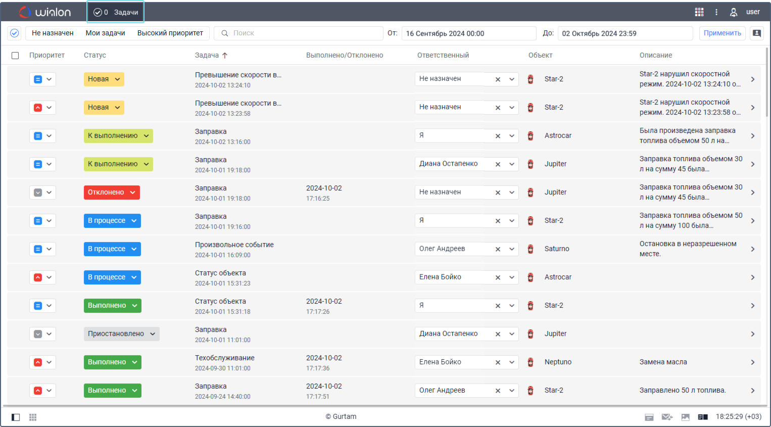 Вкладка Задачи позволяет оптимизировать ваш рабочий процесс. Здесь вы можете находить все задачи и получать информацию о них, управлять ими, связываться с водителями и выполнять другие действия.