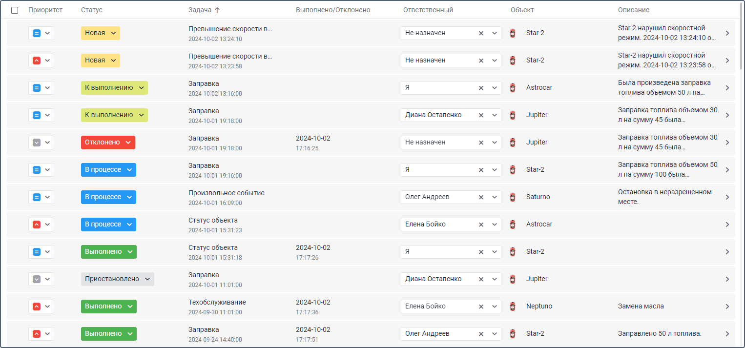 По умолчанию задачи отсортированы по времени регистрации события, от самой новой до самой старой.