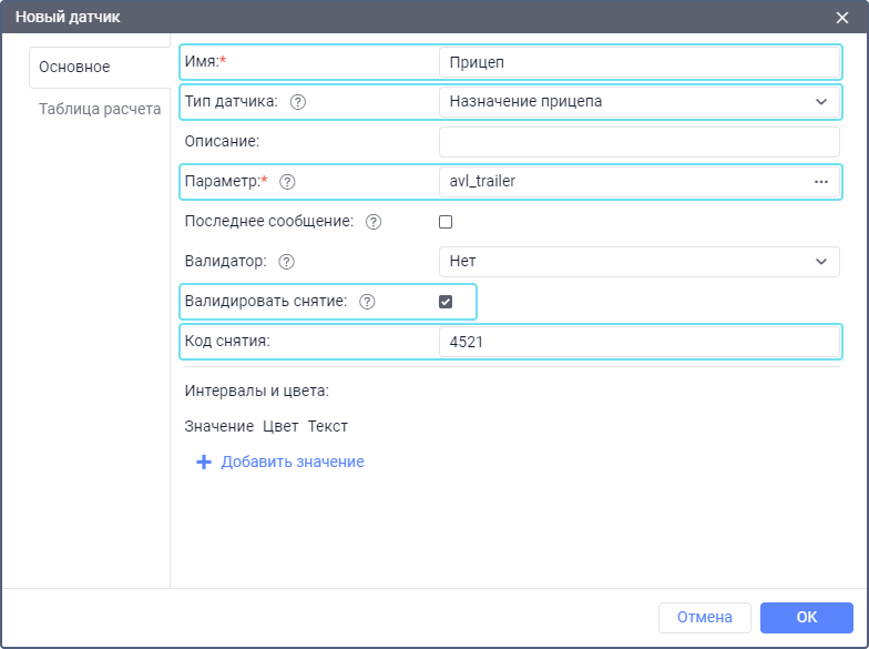 - получения параметра с кодом снятия, указанного в свойствах датчика типа Назначение прицепа;