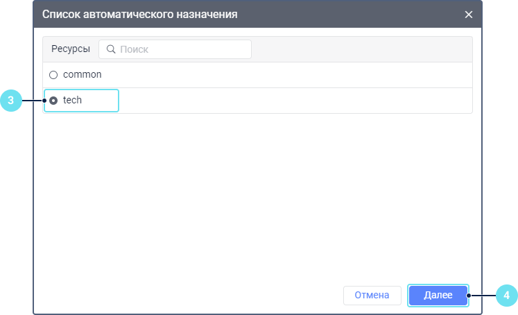 В списке ресурсов выберите тот, прицепы которого должны назначаться автоматически. Чтобы узнать, какие прицепы принадлежат определенному ресурсу, примените фильтр по ресурсу к списку прицепов (расположен справа от кнопки Создать).
