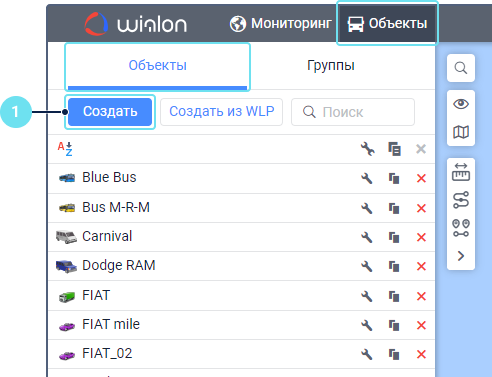 В Wialon можно создавать объекты тремя способами: