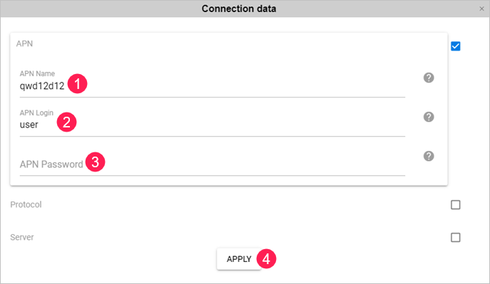 . Заполните поля сonfiguration (конфигурация) и uri (адрес оборудования flespi gateway), активируйте опцию ident.