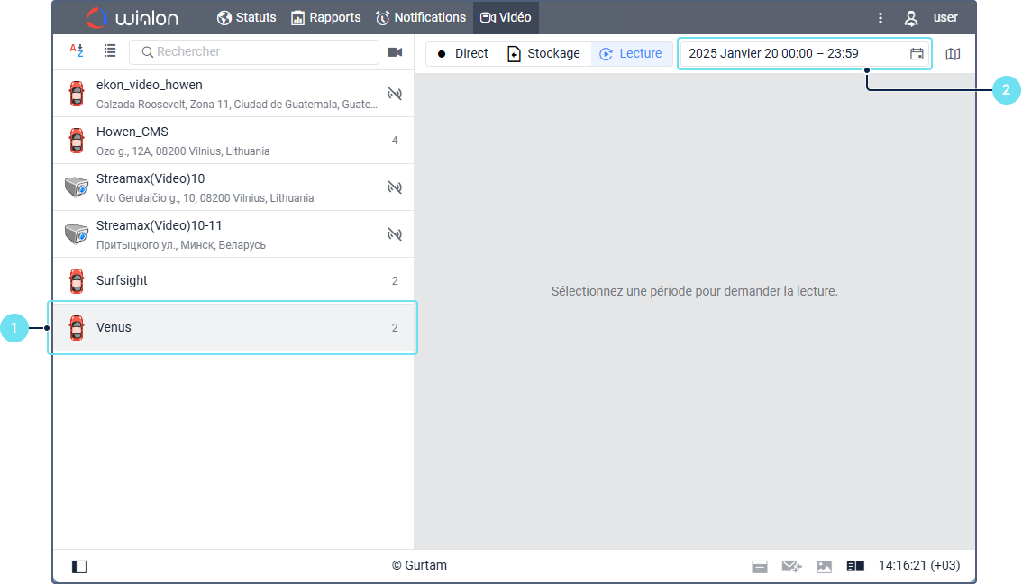 Выберите объект, запись с камеры которого вы хотите получить. В списке показываются объекты, в свойствах которых настроены камеры. Их число указано напротив имени объекта. Объекты, которых нет на связи, обозначены иконкой