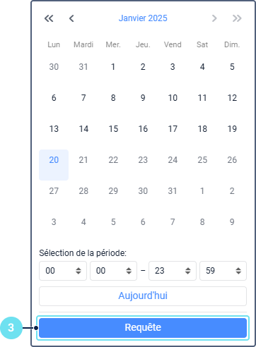 Укажите дату и временной интервал, за который необходимо запросить запись. Это можно сделать вручную или с помощью календаря. Те дни, в которые были зафиксированы сливы и заправки, отмечены в календаре иконкой