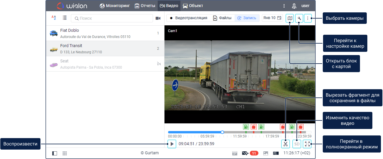 Другие особенности работы с картой, не касающиеся трека и объекта, смотрите на странице Видеотрансляция.