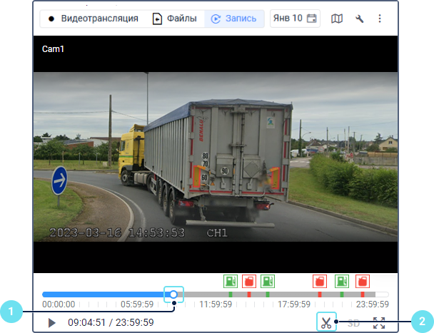 - Передвиньте ползунок в необходимое место на временнóй шкале или нажмите на маркер необходимого события, чтобы установить ползунок за 10 секунд до момента, когда оно было зафиксировано.
