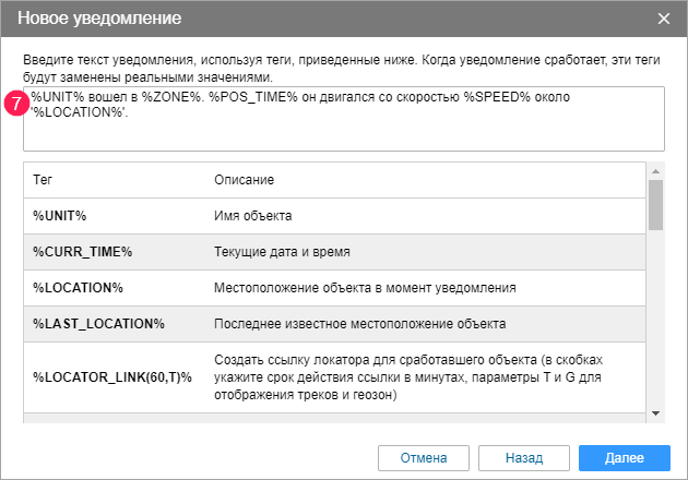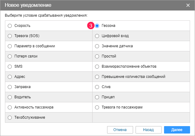 Рассмотрим процесс создания уведомлений на примере уведомления о входе в геозону.