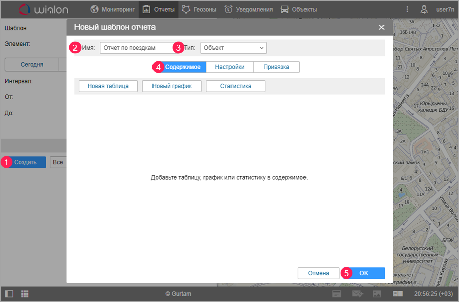 - Добавьте таблицы и/или графики на вкладке Содержимое (4).