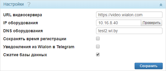 | URL видеосервера | Адрес сервиса для обработки и хранения видеофайлов с устройств. |